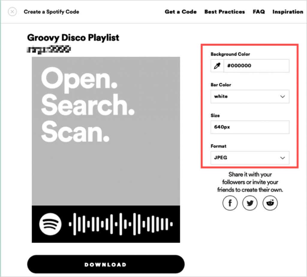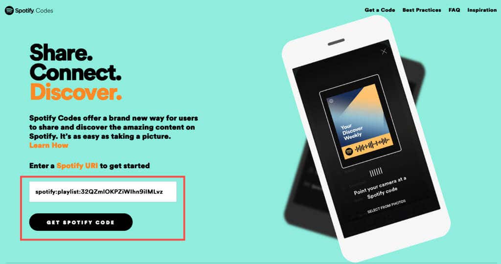 - Head to the Spotify Codes website, paste the playlist link into the box, and pick Get Spotify Code.