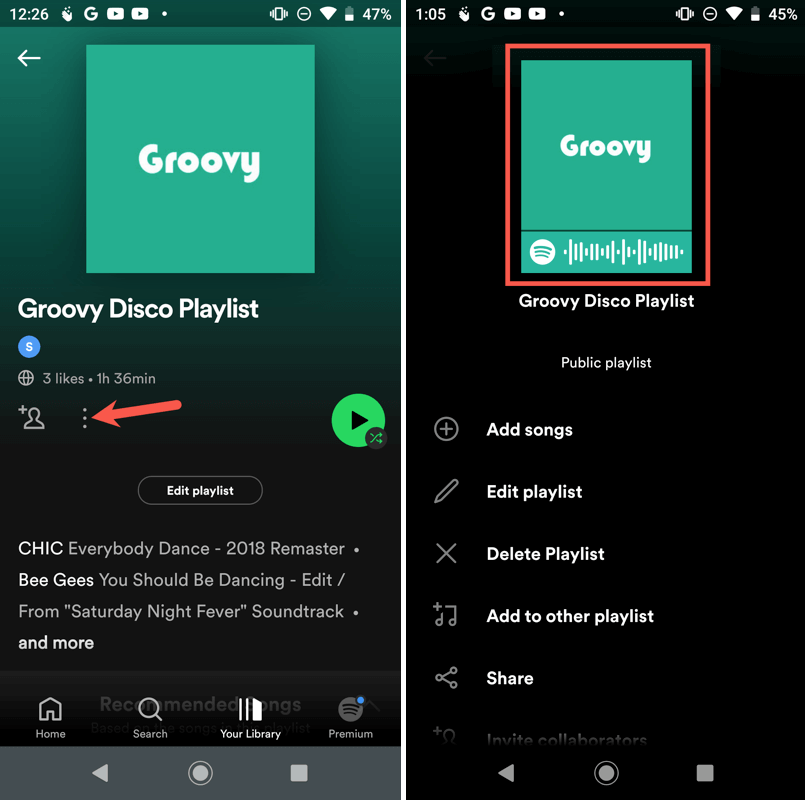 Open Spotify on your mobile device and go to the Your Library (Android) or Library (iPhone) tab. Choose the playlist you want to share and do one of the following.