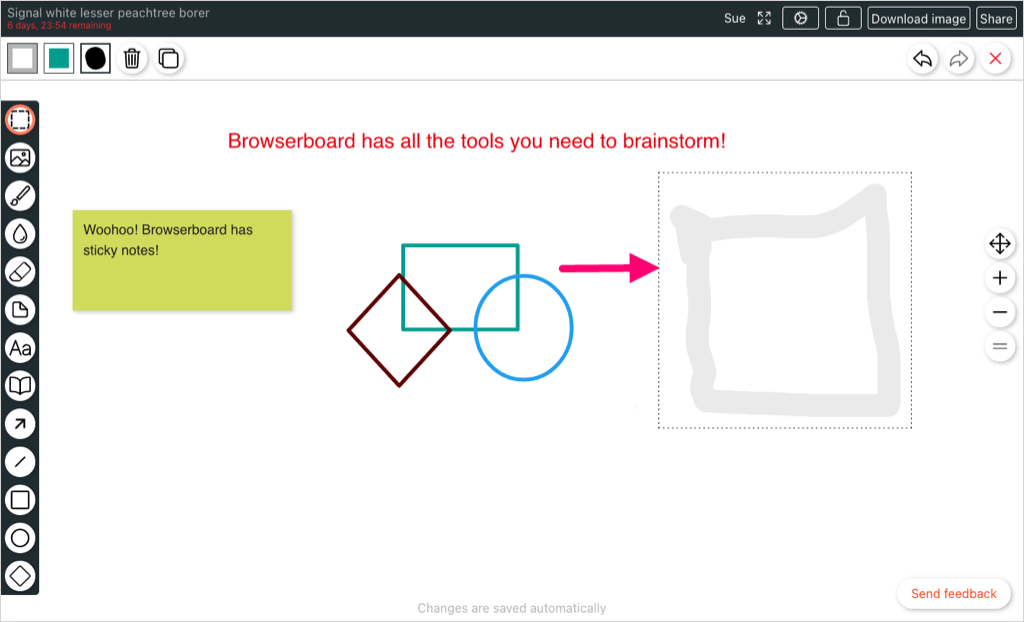For another option similar to Whiteboard Team, look at Browserboard. You can make a board without an account, use the basic tools you need like a pen, marker, and sticky notes, and draw shapes, lines, and arrows.