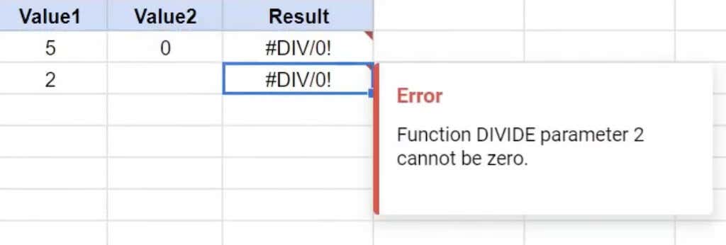 What it means: There are two reasons why you might get a #DIV/0! error. It appears when you attempt to divide a value by zero (which can occur when you have a zero or a blank cell reference in the denominator), an invalid mathematical operation, or when you try to divide with a blank space. Depending on the error message you see, you’ll understand the context you need to correct your formula.