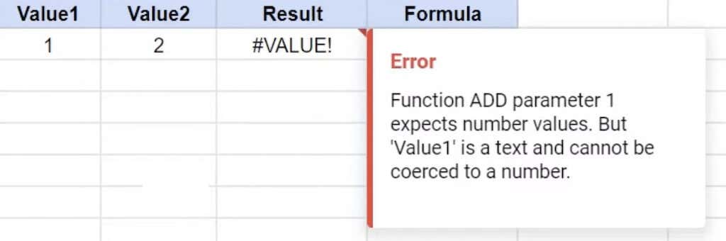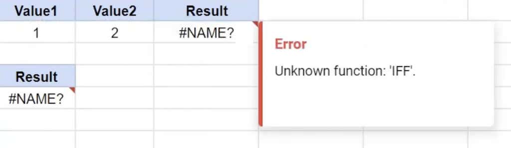 You’ll also get the same name error if you miss quotation marks (or double quotes) by mistake. These errors don’t always give you additional context, so you’ll have to thoroughly check your formula to find the place where you’ve made a mistake.