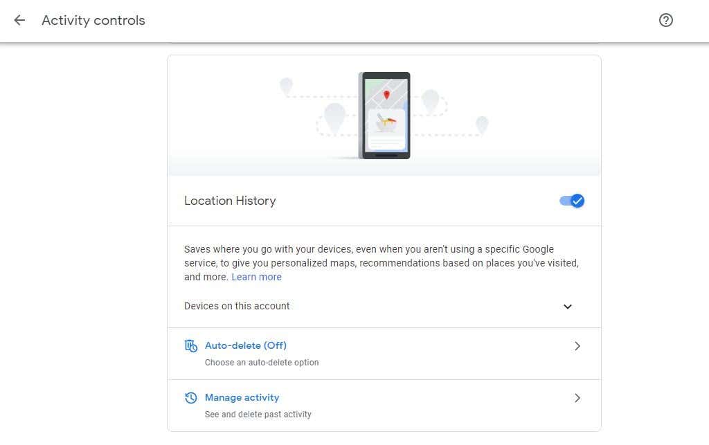 To get started with viewing your location history, select Manage activity on the Activity Controls page.