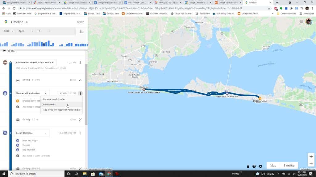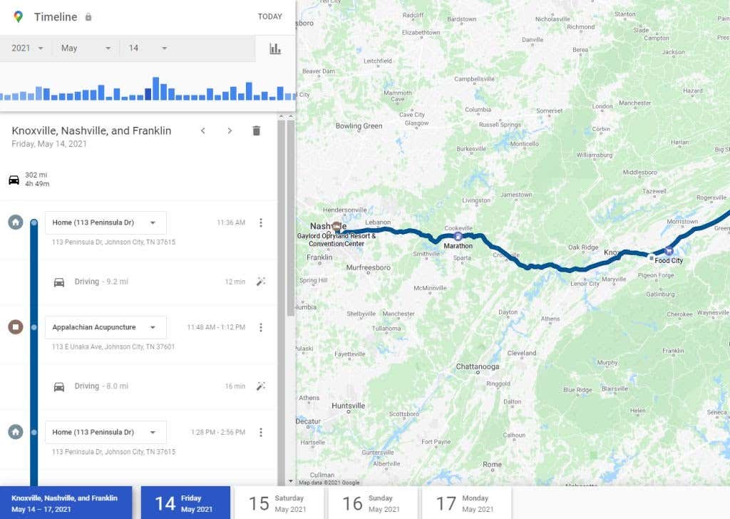 Once you use any of the techniques above to identify the day of your trip and select it, you’ll see a complete timeline of the trip.