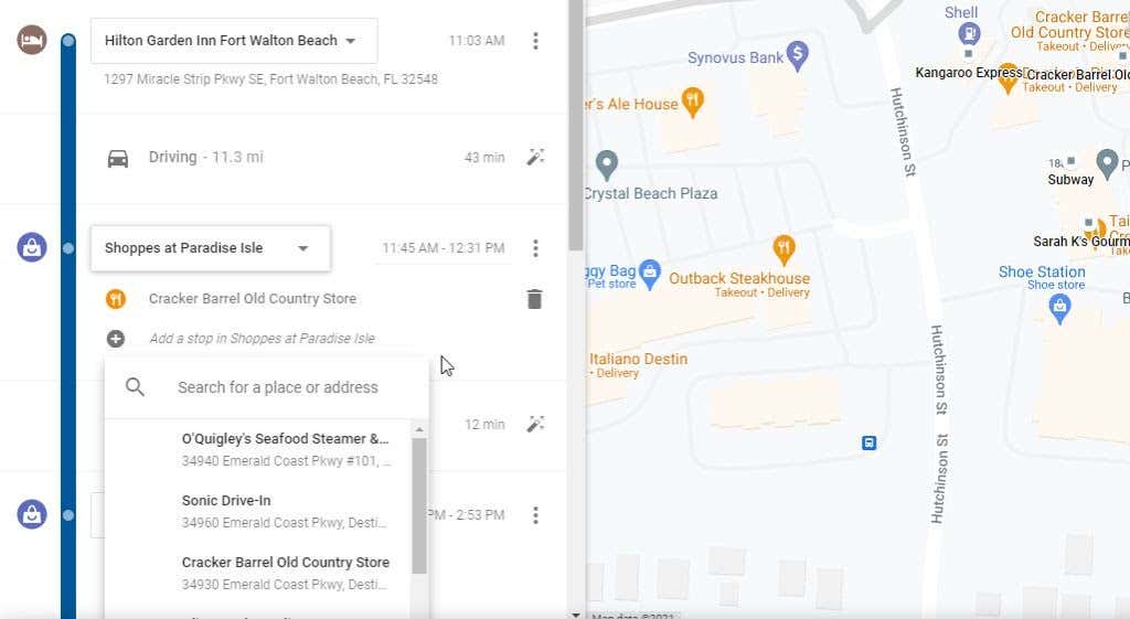 Note: If you notice that Google never logged a location you visited recently that you want to remember, you can add it to your trip details. To do this, just select the three dots to the right of the nearby location you visited and select the option to Add a stop. Keep in mind this is only available if one of the areas you stopped at had multiple locations or businesses to visit.