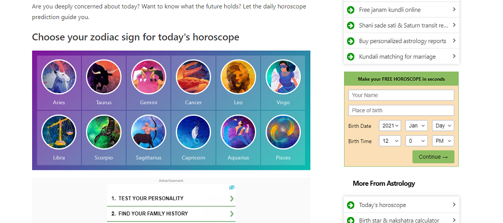 Prokerala comes from Indian astrology specialists. It offers daily and monthly horoscopes depending on your star sign. You can even get an idea of how your week will unfold with their weekly horoscope.