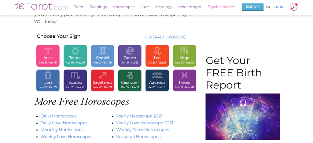 Like the other websites, you can enjoy other free horoscopes like your love, weekly, monthly and yearly horoscopes.