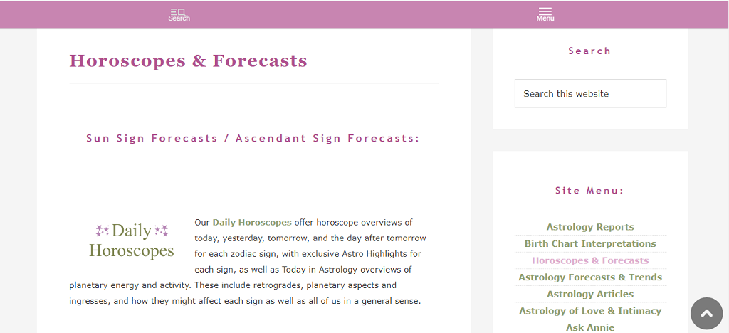 The site’s founder, Annie Hesse has studied astrology and established the site with user-friendly astrology readings and horoscopes.