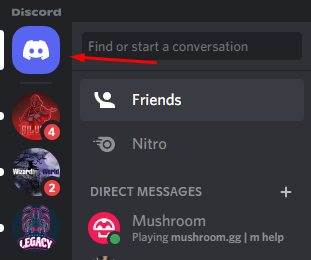 - Tap the Discord icon found in the left-bottom corner of your screen. This will bring up all your direct messages and channel lists.