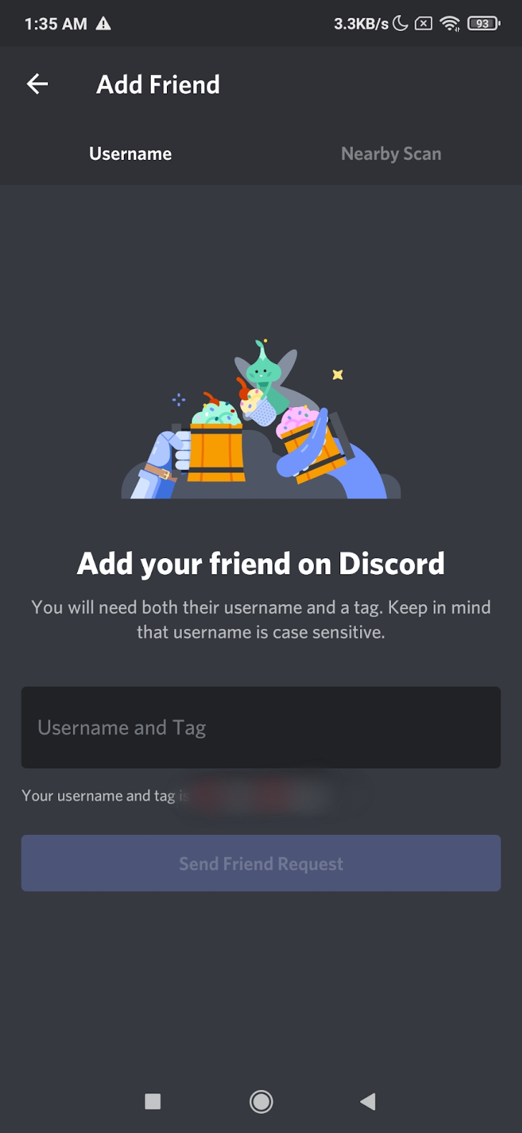 - From here, you’ll need to provide the Discord username or tag of your friend in the box provided.