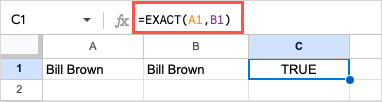 Are you working on comparing data in your sheet? Using the EXACT function, you can compare two strings of text and receive a simple True or False result for whether they match or not.