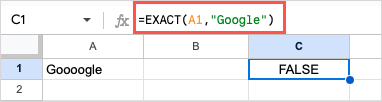 =EXACT(A1,”Google”)