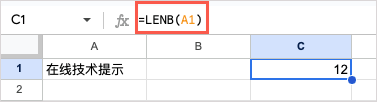 With this formula, we’ll get the character count for the text in cell A1 but as bytes instead: