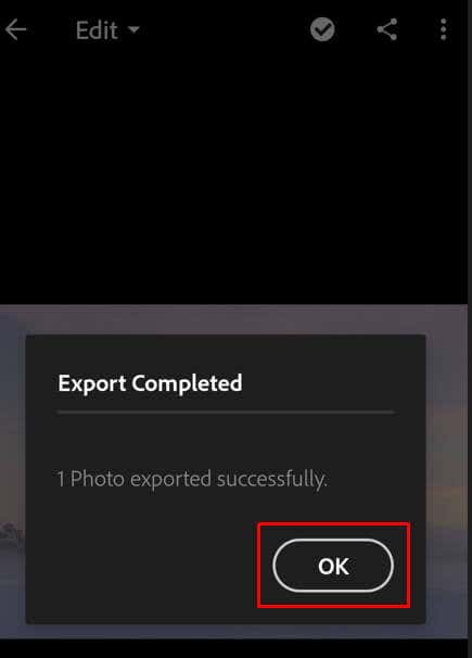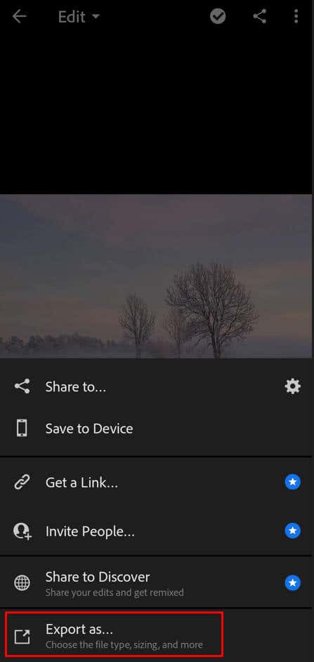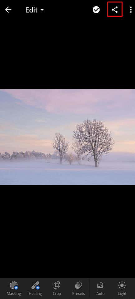 - Open your PNG image in the Lightroom app and go to the Share icon.