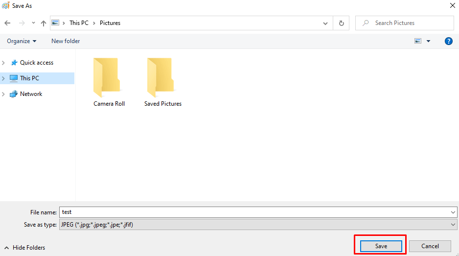 - Choose a folder where you’ll save the converted image. Rename it if you want and click the Save button.