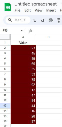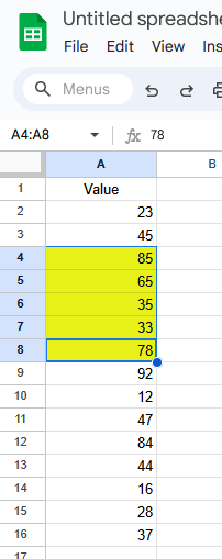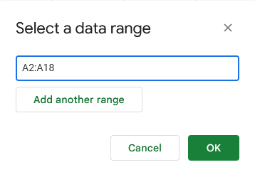 - When the dialog box opens, type in the range of cells where you want to apply the formatting. Look at the cell numbers and column letters and type in the range— e.g. A2:A16. This will highlight the cells that meet the conditional formatting rule .