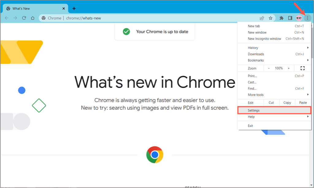 - Select the Customize and Control Google Chrome icon (three dots) on the top right.