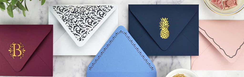 There are many websites to order custom-printed envelopes from, but what about laser-cut envelopes? Cards & Pockets offers the unique option to customize your envelopes with laser-cut designs, creating delicate patterns that are impossible to replicate with printing alone.