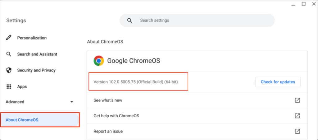 Open your Chromebook’s Settings app and expand the “Advanced” drop-down section on the sidebar. Select About ChromeOS to check what version of Chrome’s operating system is powering your Chromebook.