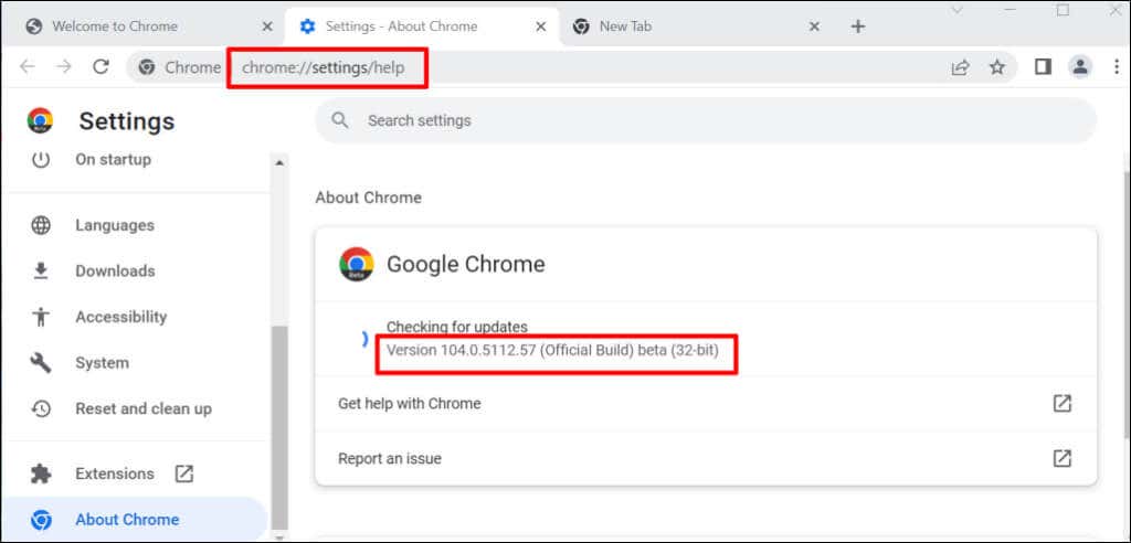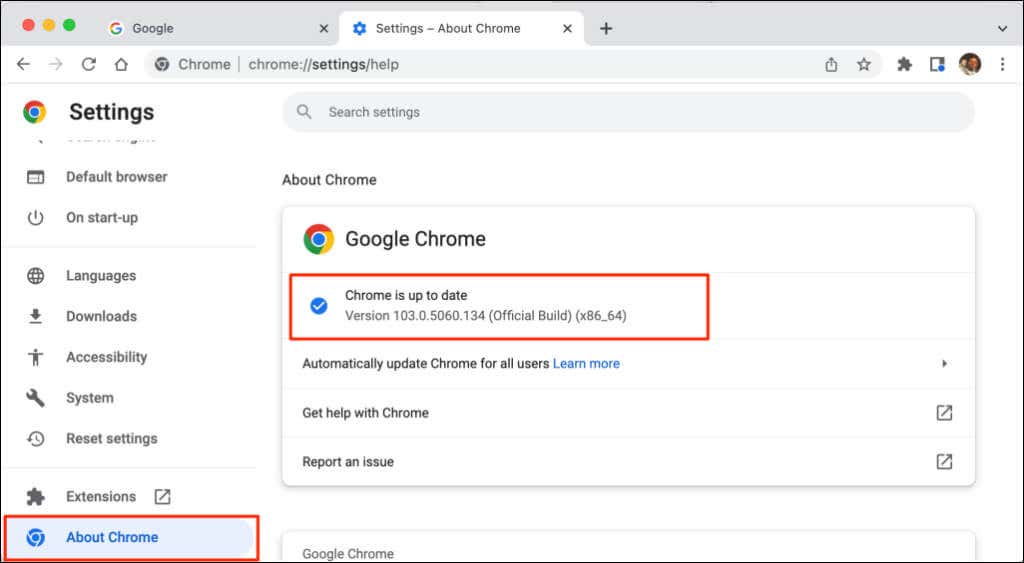 Alternatively, paste chrome://settings/help in Chrome’s address bar and press Enter on your keyboard.