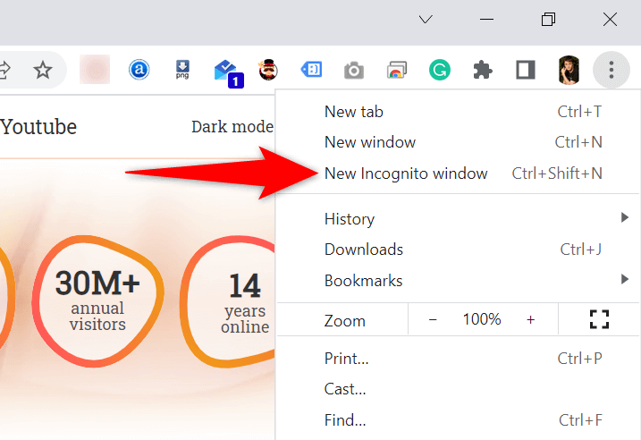 - Open Chrome, select the three dots at the top-right corner, and choose New Incognito window.