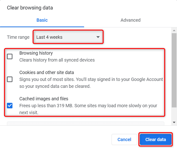 - Select a time range to clear data from the Time range drop-down menu. Then, choose the kind of data you’re willing to let go of and select Clear data.