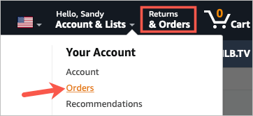 - Select either Account & Lists > Orders in the drop-down menu or use the Returns & Orders button.