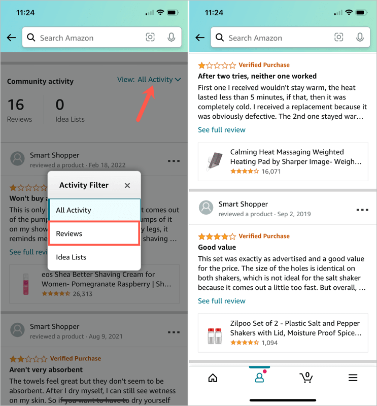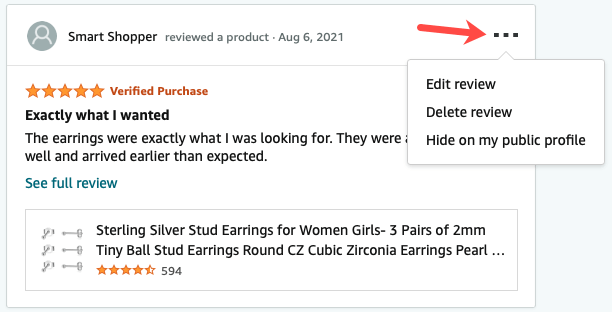Maybe you want to revisit a review you’ve written or edit one. You can see all the Amazon product reviews you’ve provided by accessing your public profile.