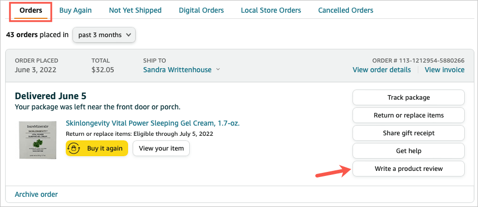 - In the How’s Your Item? section, select Write a Product Review.