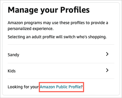 - Then, select the link for Amazon Public Profile. Be sure you see a message at the top stating that you are seeing a private view of your public profile.