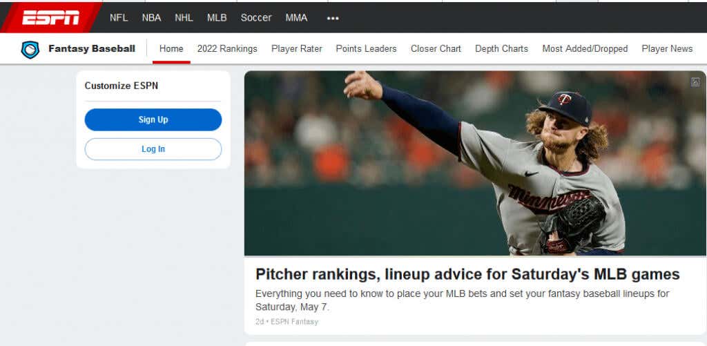 This website always ranks in the top five. It has real-time updates of player news, stats, and rankings that will help you make decisions for each season. After all, ESPN has a significant presence in the world of sports. It usually has the newest baseball content to offer as soon as it’s released. Free leagues are available through ESPN, but it will cost you if you want detailed player info or additional help with DFS.