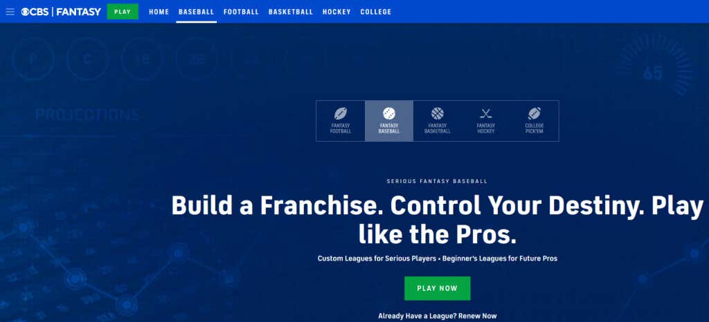 CBS won many awards for being the best fantasy sports game provider on their website or through mobile apps available for Android and Apple. Besides baseball, they also feature fantasy football and fantasy basketball. The best part is that CBS is devoted to both beginners and advanced players.