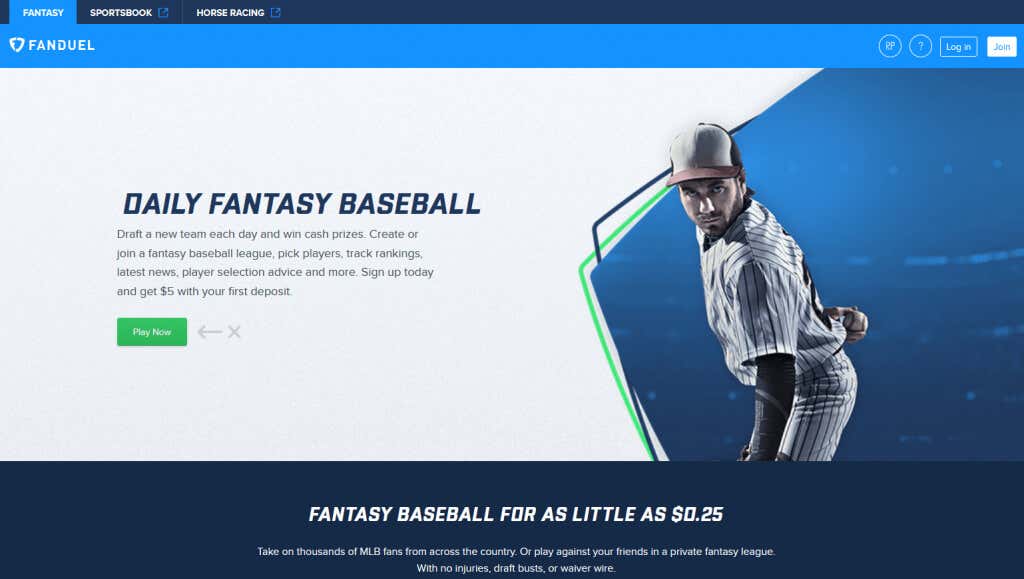 MLB.com is the official web page of Major League Baseball, so it’s naturally one of the best places to play fantasy baseball. This website relies heavily on statistics and data from real players and is perfect for DFS. During the baseball season, games are run every day, all day long. MLB.com offers free fantasy leagues, and you can try your league for the whole season free of charge.