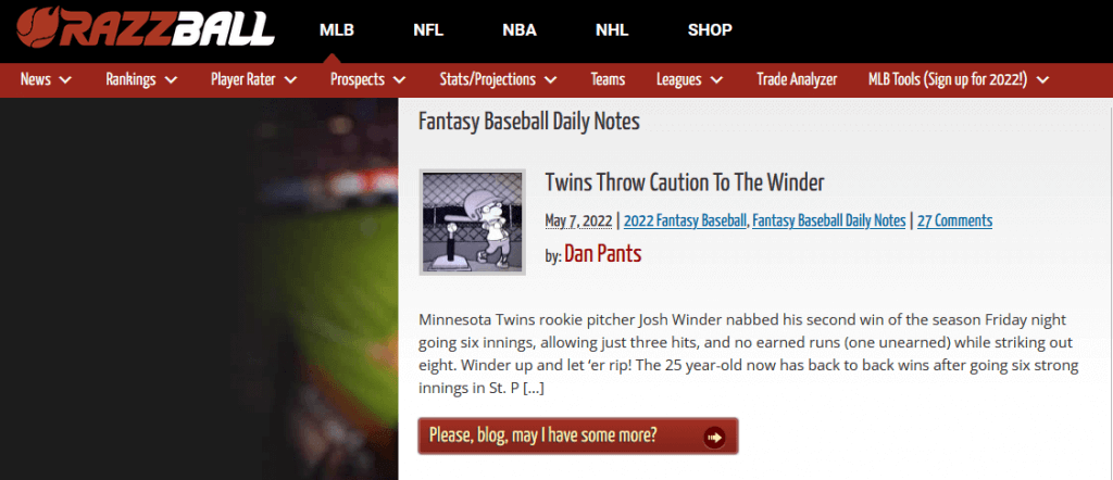 Most of the content of this website is behind the paywall, but the news is not. Here you can have all the essential headlines in one place. Their journalists are making it worthwhile for all fantasy baseball fans too.