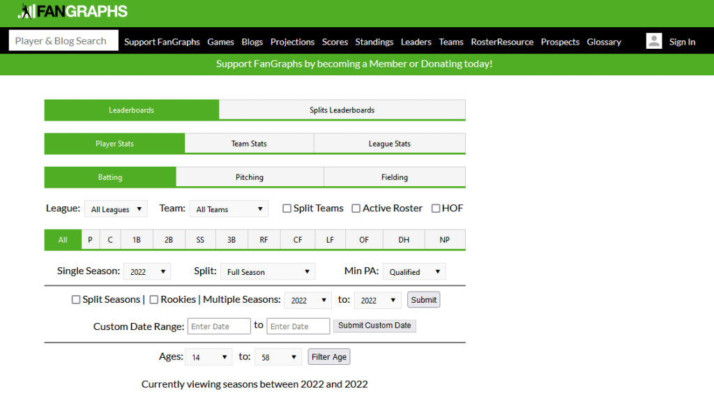 Although Fangraphs is free, you can choose to support their work by paying a membership. There are various membership options, with the basic monthly fee being $5 and yearly $25.