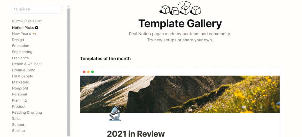 Most of these templates are designed by the community, and Notion merely curates and features the best on its template gallery. The collection is organized into various categories, making it easier to find the best Notion templates for the job.