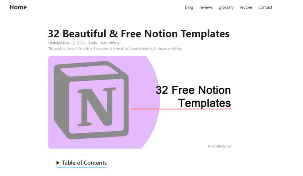 Nick Lafferty’s blog is an excellent resource in such cases. Built around increasing productivity, Nick Lafferty offers various free productivity tools for anyone to download. Among these is a curated list of 32 Notion templates geared toward boosting productivity.