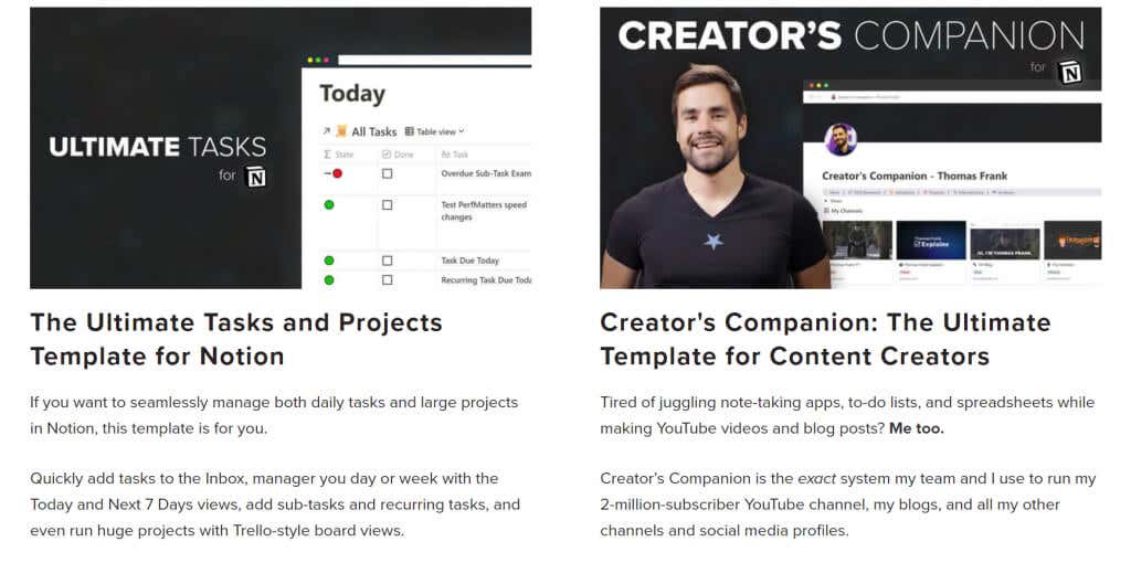 Thomas Frank offers many Notion courses on his website, along with tips and tricks to boost productivity. And of course, a bunch of well-designed templates.