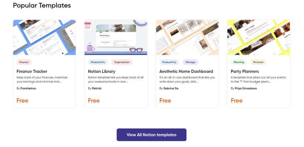 Ranging from financial trackers to aesthetic Notion templates, there are many great free options on Prototion. Just use the View All Notion templates button and then select the Free checkbox to filter out the paid options. You will find a bunch of useful Notion templates.