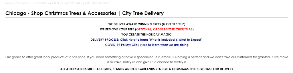 The downside is that they only service the Chicago area, but it’s still a great way to buy a real Christmas tree without the mess and struggle of transporting it yourself. You can also buy accessories like a tree stand, wreathes, candles, and more. Maybe there’s a similar Christmas tree delivery service near you?