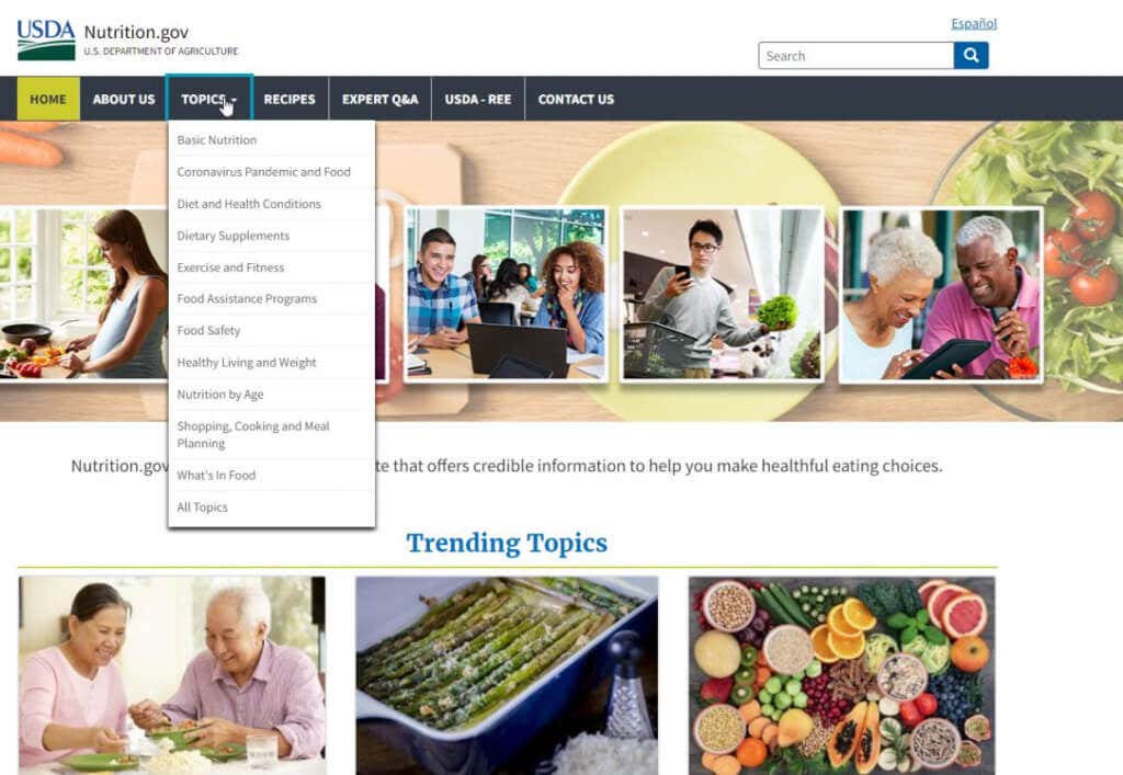 The USDA provides its own nutritional website called Nutrition.gov. This website offers valuable science-based information about nutrition that you can depend on. This includes nutrient databases from the USDA, articles about food and diet, advice on preventing disease and illness, and even seasonal recipes.