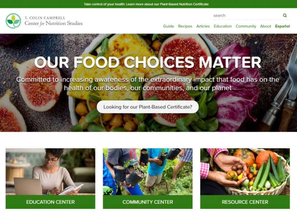 The Center for Nutrition Studies is a website created by Dr. Colin Campbell. Dr. Campbell is a celebrity amongst the Vegan community and is featured in many plant-based documentaries. His fame comes from his seminal research project, The China Study, which proved that animal proteins might represent one of the most significant risk factors in major diseases like cancer and diabetes.
