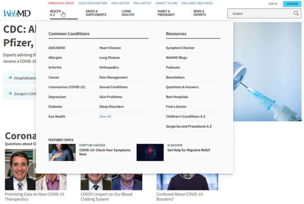 WebMD is one of the most well-known medical resource sites on the web, for a good reason. The content at WebMD is unlike most other health-related websites. Many of the content contributors at the site are part of the medical community and certified medical experts. The site also has a Medical Editorial Board to ensure that all content is accurate and based on science.