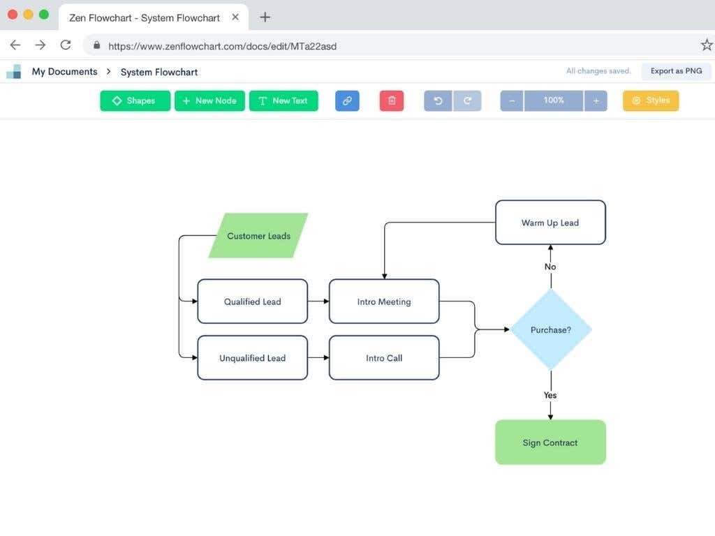 Plus, you can easily share your work with others using the Export and Publish feature. You can publish it as a live document so that your changes are updated automatically, or download the flowchart as a PNG file for easier file sharing.