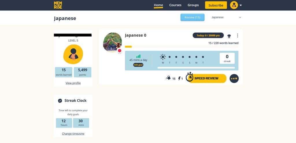 With each lesson, you’ll learn new words and see how they’re used. The site tracks your progress through each lesson, and you can set goals on how much and how often you want to practice.
