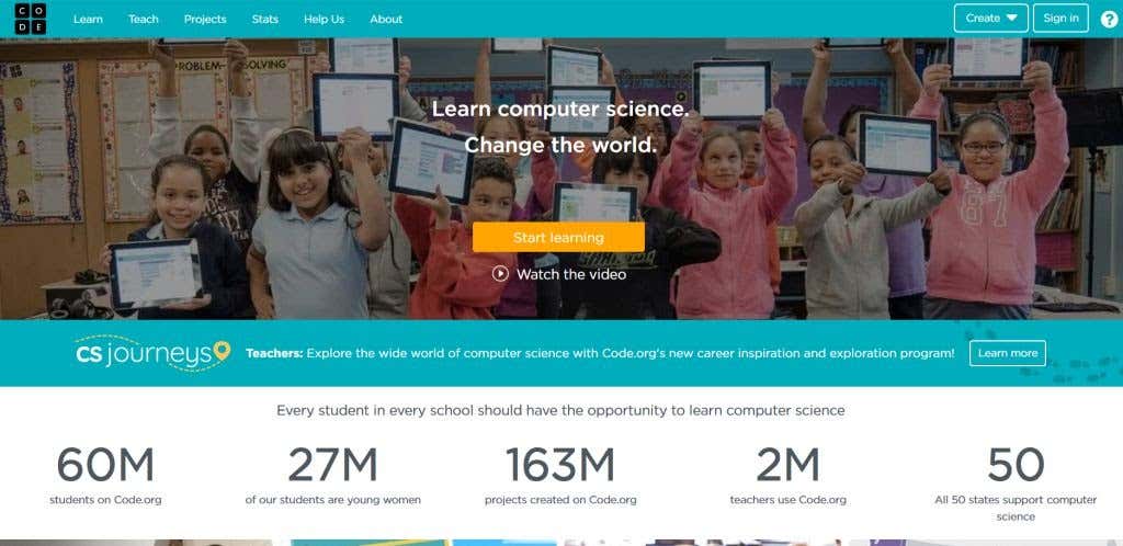 For a great free site, code.org provides plenty of resources and lessons for budding coders. Although the site is mainly designed for teaching grade-school students, anyone can use the site to learn to code.
