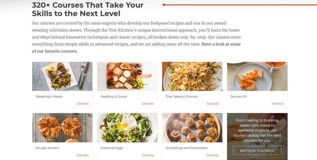 With over 320 lessons on cooking, including basic methods, how to use ingredients, and more advanced skills, this is an excellent destination for anyone interested in learning the basics of cooking. You can filter courses by skill level, ingredient type, or category to learn what you’re interested in.