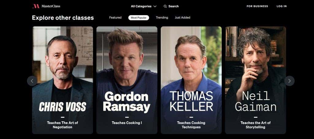 If you really want to learn from the experts, Masterclass is a phenomenal resource. With courses from people such as Gordon Ramsay, Neil Gaiman, and Chris Voss, you’re sure to get top-notch information on a broad catalog of subjects.