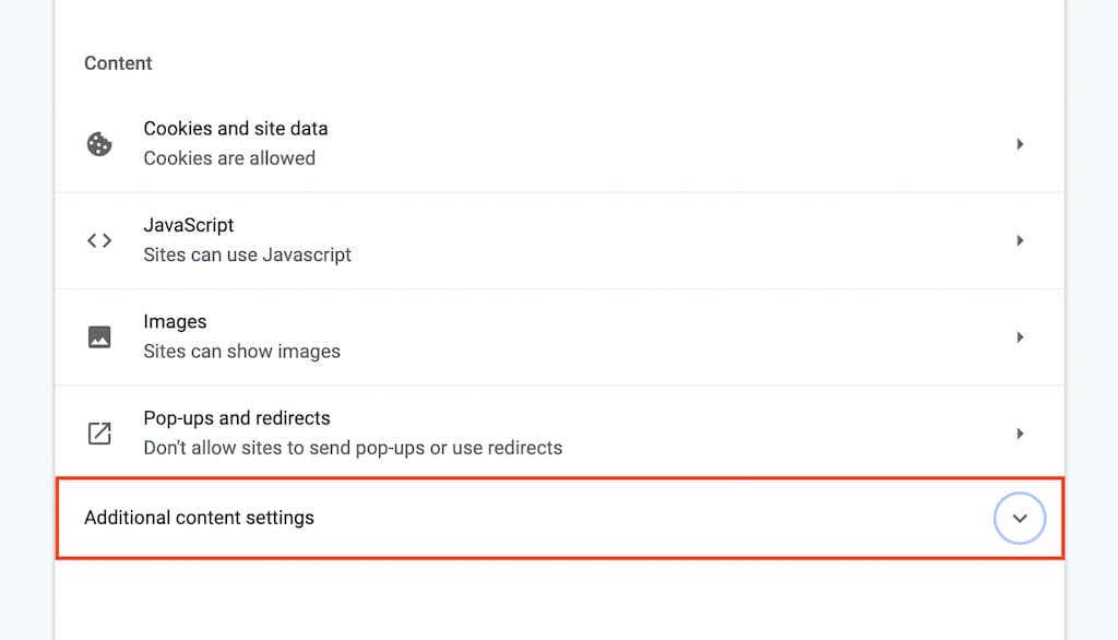 4. Scroll down and select Additional content settings.