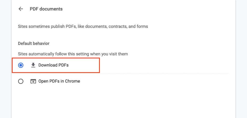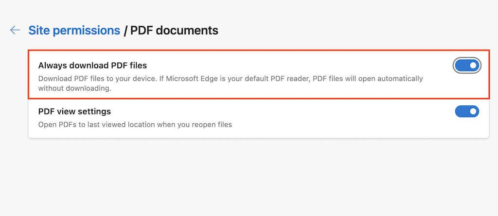 4. Turn on the switch next to Always download PDFs.