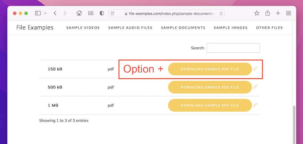 To do that, just hold down the Option key while selecting a link that points to a PDF file. Try practicing it here.